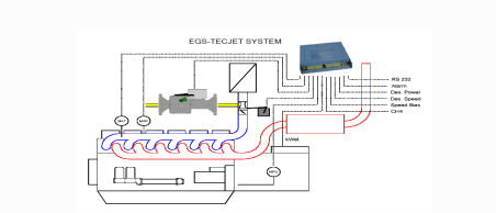 EGS是全电脑智能化,高精确度的燃气进气控制系统,可通过计算机接口实现机组参数实时监控。它的信息输入系统包括速度传感器、λ传感器(机组标定用)、功率传感器或扭矩信号传感器、甲烷传感器、两个进气压力传感器和一个进气温度传感器,这些传感器将发动机运行过程中的填埋气体浓度变化、转速、功率(或扭矩)、尾气中氧含量(标定用)等信号及时传递给EGS控制器。EGS控制器将上述信息进行综合处理,计算出发动机更佳运行所需要的燃气量,将信息传递给Tecjet控制阀,由Tecjet控制阀控制调整燃气进气量,实现控制更佳空燃比的目的。通过控制WOODWARD-ProAct执行器来控制混合气的流量,将发动机的转速控制在标定范围内。